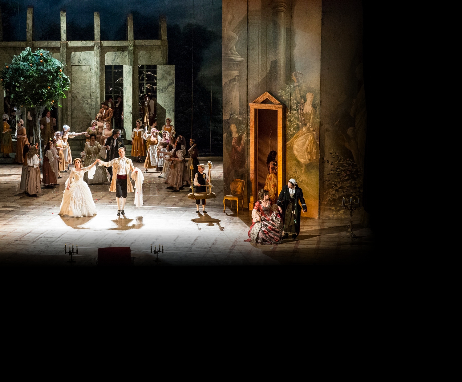 A szerelemtől, féltékenységtől és félreértések sorától őrült nap zűrzavaros eseményeit briliáns szellemességgel elmesélő opera középpontjában a Sevillából már ismerős agyafúrt borbély és tűzrőlpattant szerelme, Susanna áll. Az emberi érzelmek, vágyak, álmok és megcsalattatások, titokban küldött levelek, átöltözések, félre- és felismerések garmadájának történetét Mozart sokrétű, kifejező, szellemesen ironikus, mégis mindig empatikus zenéje teszi teljessé. Galgóczy Judit rendezése a „mindenki másnak látszik, mint aki” játszmájának dinamizmusára, vibráló szövevényére koncentrál. A színpadon minden él, mozgásban van, lüktet – és közben árad a zene.